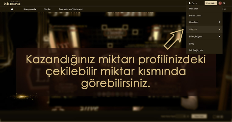 Bu kazancınızı aşağıda gördüğünüz gibi profilinizde görebilirsiniz. En güvenilir canlı casino sitesi Casino Metropol'de daha fazla kazanmak için diğer oyunlarda oynayabilirsiniz.